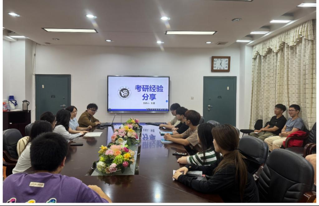 于E105会议室成功举行考研经验分享讲座,副院长林愿主持,众多考研学子参与。