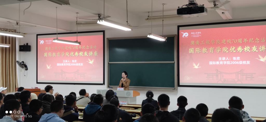 2006级校友张欣,现任湖南康星百货连锁有限公司总经理。她分享了自己在国外丰富而精彩的求学经历,使新生们开阔了眼界、增长了见识。同时她还还分享了不少求职经验与社交技巧,她勉励大家在四年的大学征程中要一步一个脚印,树立远大的人生目标,脚踏实地地走好人生每一步。